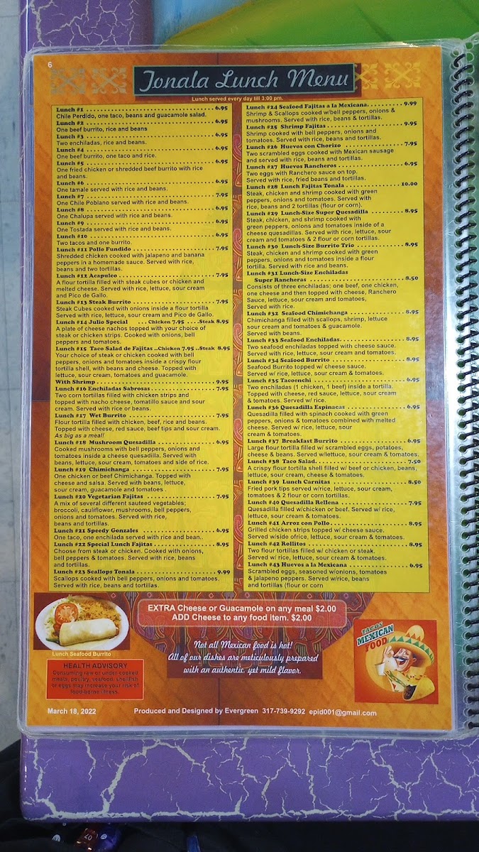 Welcome to Tonala Mexican Restaurant, where traditional flavors meet a modern dining experience at 628 Main St, Hope, IN. This beloved eatery offers a menu that will tantalize your taste buds, featuring highlights such as the Enchiladas Sabrosas and Pollo Fundido, both priced affordably under $12.99. Vegetarian? Don’t miss the refreshing Crispy Chicken Salad or the comforting Tortilla Soup.